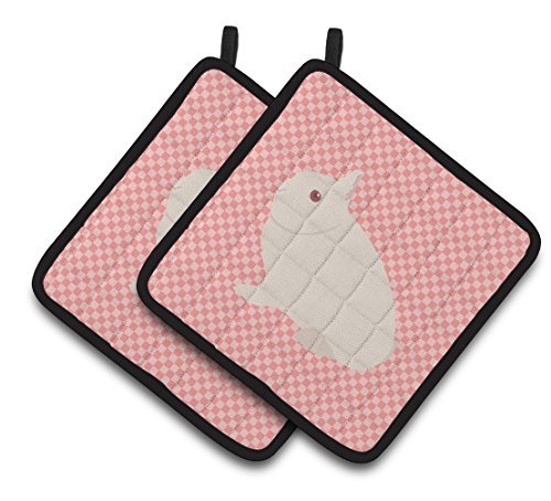 Caroline's Treasures BB7964PTHD Hermelin Rabbit Pink Check Decorated Pot Holder, 7.5" x 7.5", Multicolor