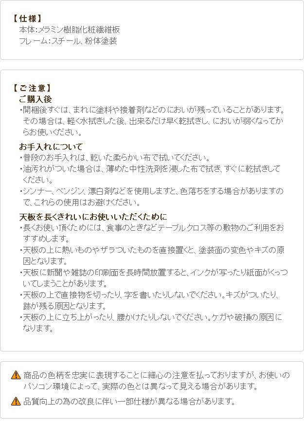 天板:メラミン樹脂化粧繊維板