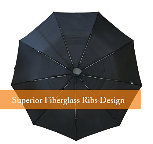 -. Feature : SUPER STURDY - It's the best in class construction. We call this product our "SUPERMAN" umbrella. We put all the great features such as safe-closing mechanism, Teflon coating, wind-venting, flexible fiberglass ribs, ergonomic handle and quick auto open/close into one super umbrella. / LATEST SAFE-CLOSING MECHANISM - When closing this umbrella, the shaft has a safe locking mechanism to avoid rebounding. As you retract the umbrella, the shaft stops as you close it. It's safer and more convenient than other auto open/close umbrellas available. / SUPERIOR WATER RESISTANT CANOPY - With this highly durable 210T Pongee fabric with Teflon coating, its makes the fabric to dry faster with Teflon water repellency technology. / DURABLE COMPACT DESIGN - Tested to withstand up to 60 mph wind. Its wind-vented feature, and its superior 9 fiberglass ribs design make this umbrella to be wind-defying without breaking. It has an ergonomic design handle with a slightly wide curve bottom to conveniently stay on your palm. It's just 11 ½ long and weighs less than 1 lb. to easily fit in purses, backpacks, and briefcases. It opens to 42" arc and 38" wide. / SATISFACTION GUARANTEE - We want you to be thrilled with your purchase. For the first 100 days, if you are not 100% satisfied with your purchase, pls. click on Contact Seller / Returns and Refunds Policy and send us your Amazon's order number with your email address. We will issue a full refund or replacement.