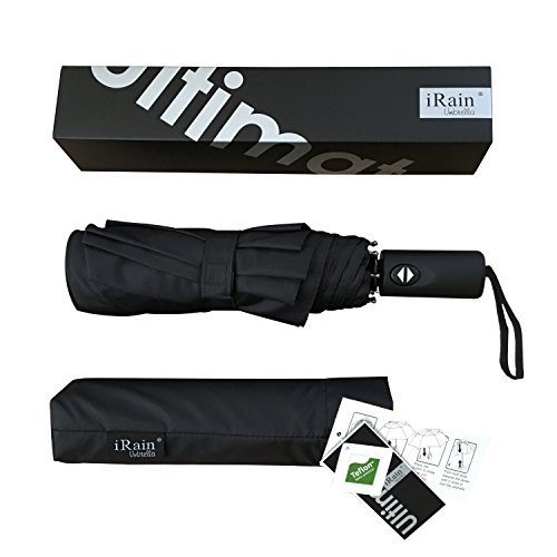 -. Title : New iRain Ultimate Windproof Auto Open and Close with Safe-Closing Mechanism and Teflon Coating Travel Umbrella