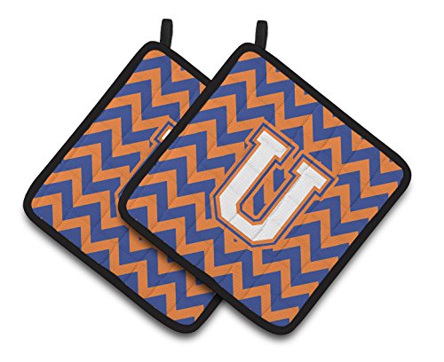 Caroline's Treasures Letter U Chevron Blue & Orange #3 Pair of Pot Holders CJ1060-UPTHD, 7.5HX7.5W, Multicolor