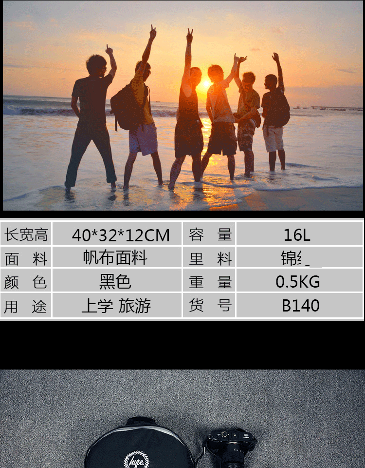 新款时尚潮流背包男个性黑色帆布双肩包潮男士学生书包都市风