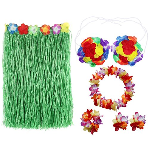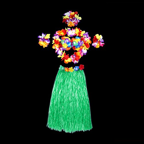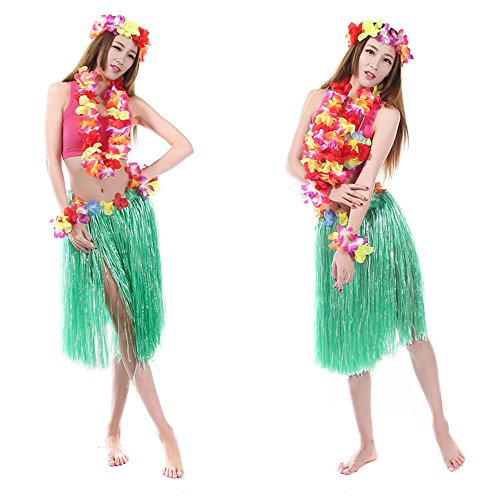 CKLT Thicken Chic Cheerleaders Hawaiian Fancy Hula Grass Skirt 23.6″ Bra Brassiere Garland Contains Total 6 Pieces (green-60cm)