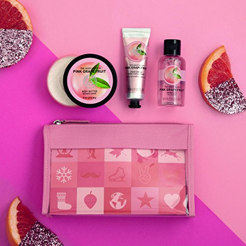 The Body Shop Pink Grapefruit Beauty Bag Gift Set, 3pc Bath and Body Gift Set of Travel Size Pink Grapefruit Body Care