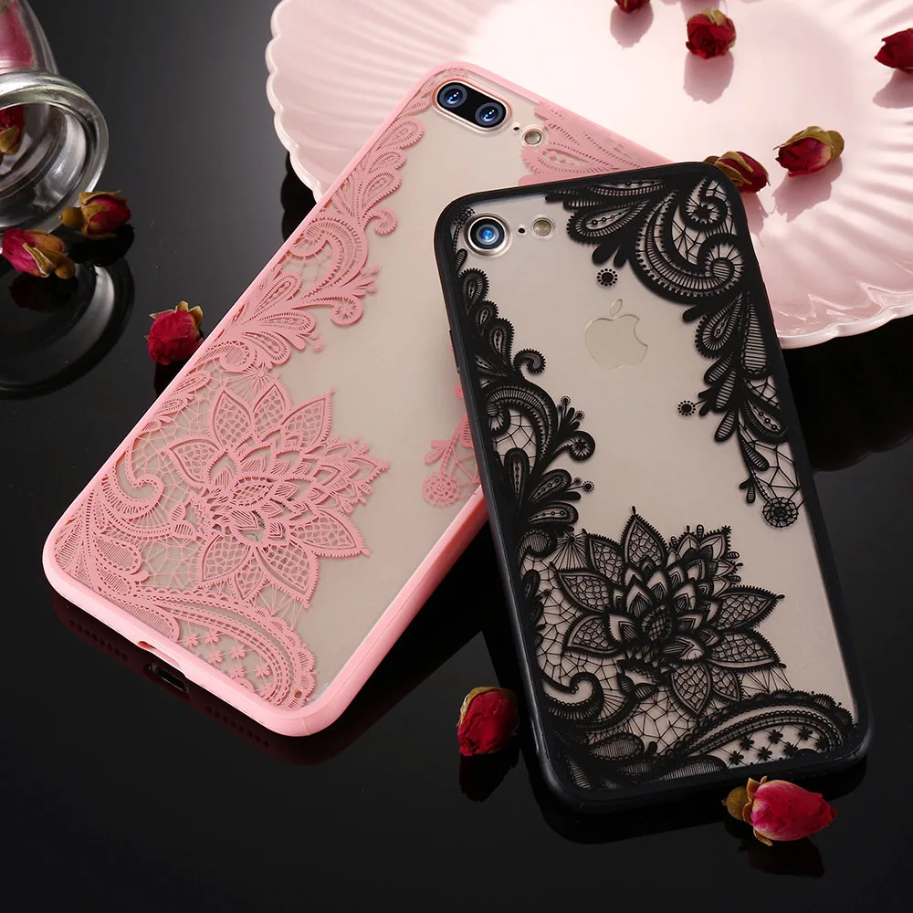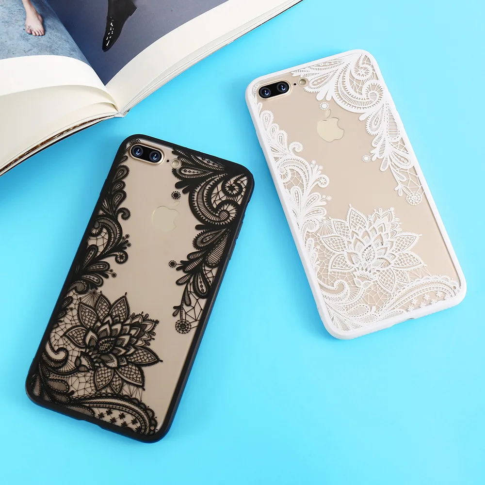 Features:Luxury Sexy Women Girls Lace Flowers Ultra Thin Clear Phone Case