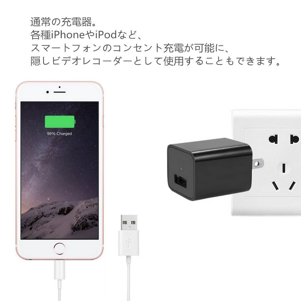 Hidden camera camcorder is shooting videos, as well as USB 5 V charging and charging terminals, you can charge smartphones such as iPhone and iPod.