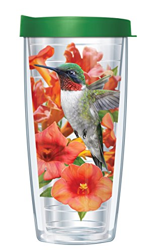 Clear Hummingbird Wrap Super Traveler 22 Oz Tumbler Cup with Green Lid