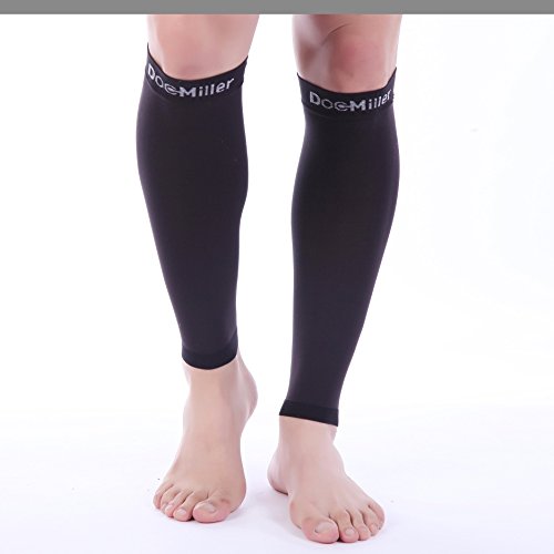 Doc Miller Calf Compression SLEEVES are made of Durable, Breathable, Comfortable, Premium fabric made of high-grade Nylon (77%) and Spandex (23%) for a snug, comfortable, compressive fit. The sleeves aid in faster recovery for improved performance and support. By boosting blood circulation in your legs and preventing injuries, the sleeves allows you to feel fresher for more activity. The perfect graduated support ranging from 20-30 mmHg allows for more blood flow where needed. Perfect opaqueness provides a professional look and feel and the compression lasts a long time. What Size Should You Get? The sizing chart shows the Calf Sleeve sizes for a range of calf sizes. Please use the right sizing. Who Should Use It Effective for both men, women and active teens, use the sleeve for a wide range of activities - from warming up for all activities to sessions of Tennis, Basketball, Racquetball, Football, Soccer, Hiking, Cross Fit, and others. Fabric characteristics keep it comfortable regardless of weather conditions. If you stand a lot during the day as a nurse, in retail or construction this product will prevent soreness and aching feet. If you travel by air, this product may help reduce fatigue and Deep Vein Thrombosis (DVT). This product is recommended for those suffering from shin splints, calf pain, swelling in the feet, inflammation, pain in leg, soreness and aids in faster recovery from sports activities and running. Studies have found that compression accelerates recovery from soft-tissue injuries like tendinitis, and reduces the severity of delayed onset muscle soreness (DOMS) after working out. This product may also help you with Restless Legs Syndrome (RLS). Don't wait anymore! Experience the benefits of the product for yourself. It is selling out rapidly, so select your size in your favorite color. And click Add to Cart. Your calves and legs will thank you! 0 |