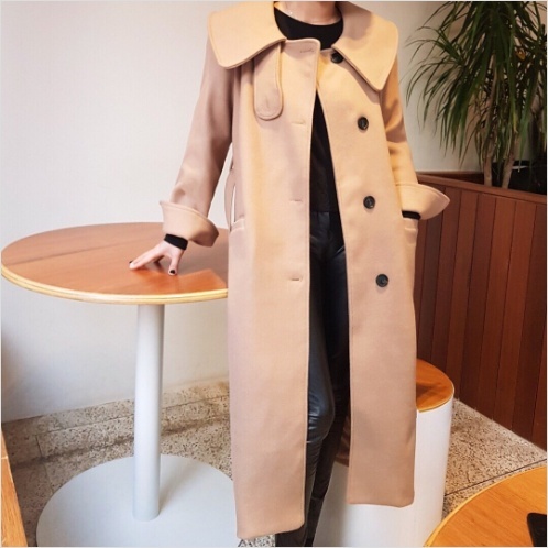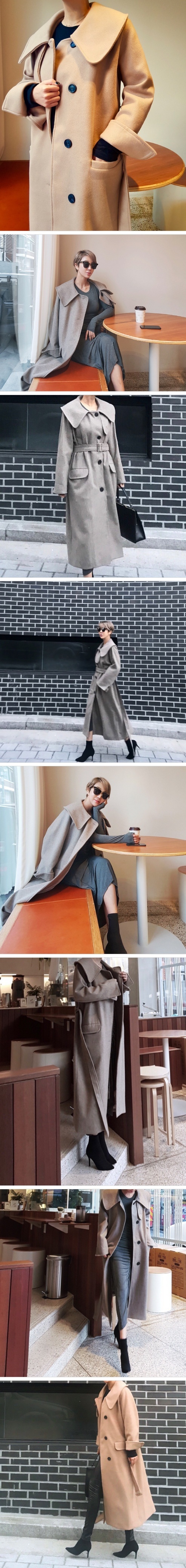 Women`s Wide Collar Wool Long Coat Gray Beige