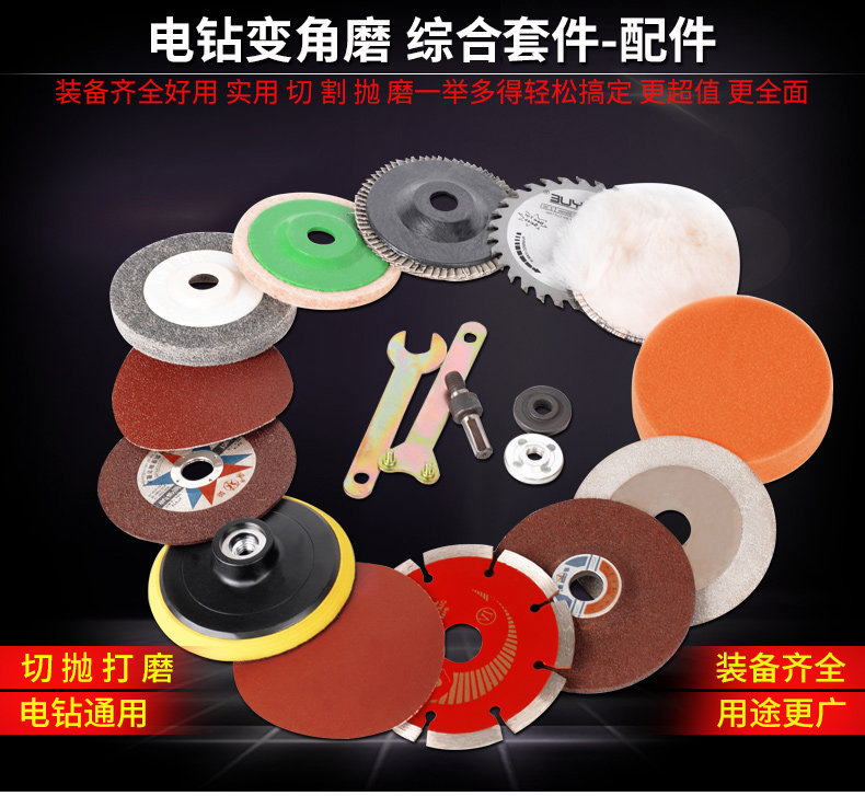 Note: Drill angle grinding accessories for DIY use, be sure to pay attention to safety. All parts must be stepped up, electric drill needs forward rotation, with impact function must be shut down impact function