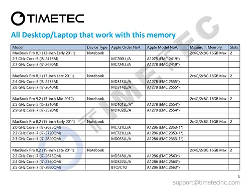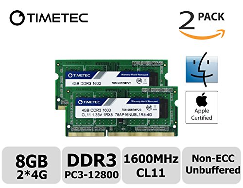 Timetec Hynix IC Apple 8GB Kit (2x4GB) DDR3 1600MHz PC3-12800 SODIMM Memory Upgrade For MacBook Pro 13-inch/15-inch Mid 2012, iMac 21.5-inch Late 2012/Early 2013,27-inch Late 2012/ 2013,Retina 5K display Late 2014/Mid 2015,Mac mini Late 2012/ Server (8GB