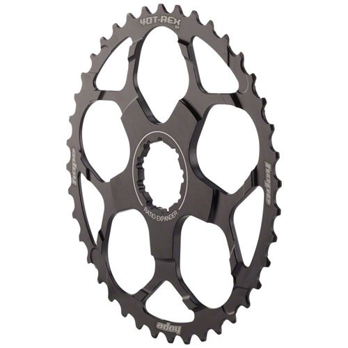 Studio : Hope Publisher : Hope Binding : Misc. Product Description T-Rex expands your 10-speed cassettes usable range for extra low gearing. Made in the UK and features specific shift points for factory-level shifting. Precise matching of the tooth profiles and shifting points specific to each cassette. Hard anodized 7075 T6 Aluminum. Allows you to upgrade your existing 11-36 10spd cassette to give an 11-40T range. Perfect mating of supporting tabs to reduce flex and aiding shift performance. Lower B-tension adjustment is needed ensuring good shifting throughout the cassette range compared to fitting a 42. T-Rex installs behind your existing cassette and replaces one of the smaller sprockets, usually the 17T. Compatible with Sram PG10360, PG1050 and PG1070 11-36 cassettes. Cassette Body Type: Shimano/SRAM 8, 9, 10 Speed. Defined Color: Black. Intended Cassette Compatibility: Shimano. Drivetrain Speeds: 10. Tooth Count: 40. 0