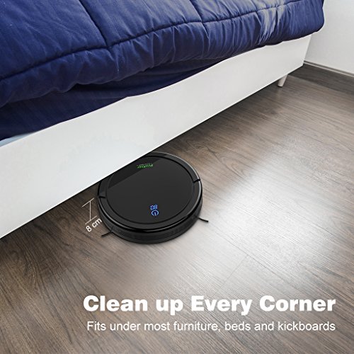 POWERFUL CLEANING: this low-profile (8 cm/3.14 in) unit can clean under or around furnitures; 1000 pa suction with 2 side brushes picks up dust, hair, fur and crumbs; it works for 80 minutes when fully charged to clean up 120 square meter
