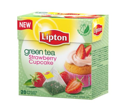 -. Feature : Lipton Pyramidenbeutel Strawberry Cupcake / Mit viel Aroma und Geschmack-Ein sündhafter Teegenuß / Einfach nur lecker Der Geschmack Frischer Erdbeeren , samtig Süße Cupcakes und mildem grünen Tees / Diese besondere Form des Teebeutels bietet auch mehr Raum zum Ziehen für ein volles Aroma , das für den perfekten Teegenuß sorgt / 20 Teebeutel x 1,4 g