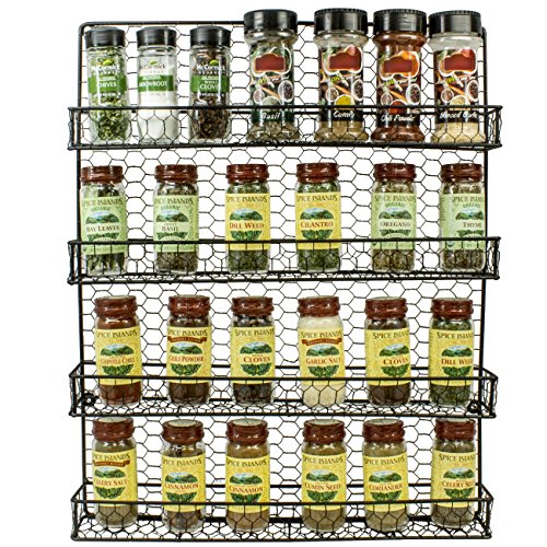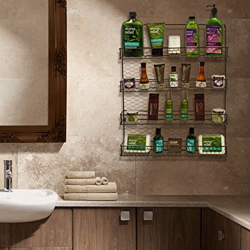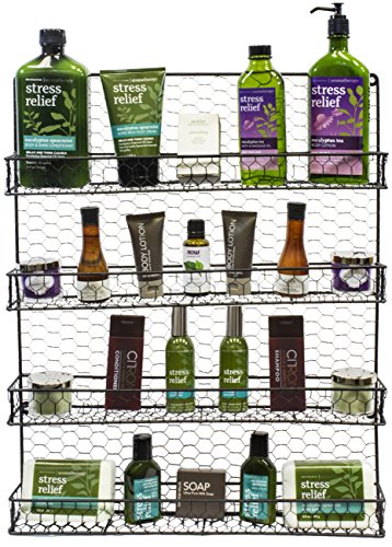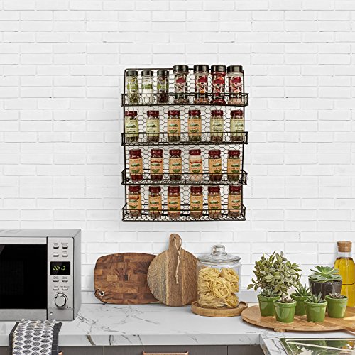 4 TIER SPICE RACK—Organize your favorite spices, seasonings, and everyday household items with a decorative wall mounted rack featuring 4 tier shelves, perfect for kitchen and/or bathroom storage