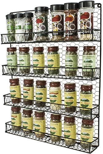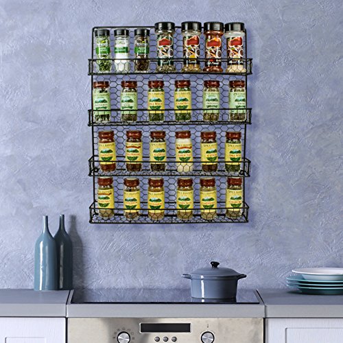 Sorbus Spice Rack and Multi-Purpose Organizer—Decorative 4 Tier Wall Mounted Storage Rack —Great for Storing Spices, Household items and More— Made of Steel (Black)