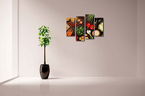 -. Title : First Wall Art - 4 Panel Wall Art Fresh Look Color Healthy Eating Of A Table Top Full Of Fresh Vegetables Fruit And Other Healthy Foods Painting Pictures P.R.Int On Canvas Fruit The Picture For Home Modern Decoration piece (Stretched By Wooden Frame,Ready To Hang)