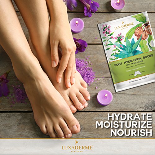 Studio : LuxaDerme Publisher : LuxaDerme Binding : Misc. Product Description Your feet take constant abuse daily. Give them a break with LuxaDerme's Deep Moisturizing Foot Hydration Socks. These contain a nutrient and moisture rich solution ideal for those who look forward to pampering their dry, rough and tired feet. Direction for use : Cleanse : Wash and dry your feet. Knead pouch to evenly distribute the essence. Apply : Separate the socks from center. Wear and tighten them with the sticker link strap. Relax : Wear for 20 to 30 minutes and let the essence absorb into your skin. Renew : Remove and discard socks, massage remaining essence on feet. Do not wash feet after treatment, let them dry naturally. 0
