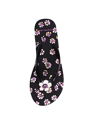 (Tory Burch)/Women's/Sandals/DIRECT FROM USA/Tory Burch Flower Printed PVC Flip Flop Sandals in Black Stamped