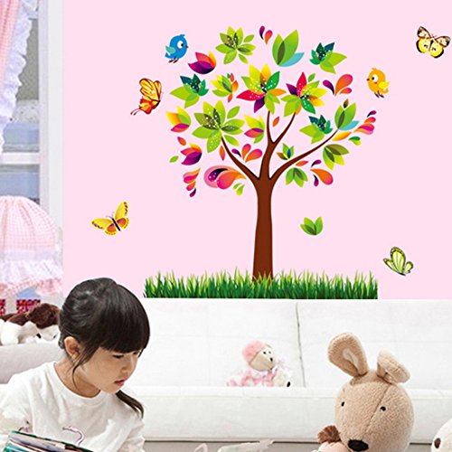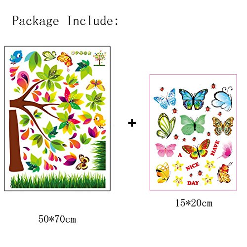 -. Title : Wall Decal Colorful Tree and Butterflies Home Sticker Paper Removable Living Dinning Room Bedroom Kitchen Art Picture Murals DIY Stick Girls Boys kids Nursery Baby Playroom Decoration