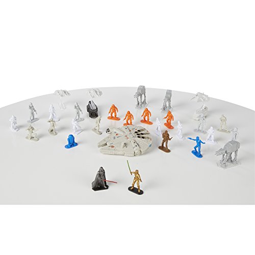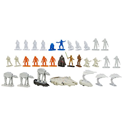 • Includes Luke Skywalker (Exclusive), Darth Vader, R2-D2, Chewbacca, Han Solo, 4 AT-AT Drivers, 4 Snowspeeder Pilots, 4 Rebel Soldiers, 7 Snowtroopers, 1 Millennium Falcon, 3 Snowspeeders, 3 AT-AT walkers, 2 Roll Attack Strikers, 3 vehicle stands and 3 vehicle bases