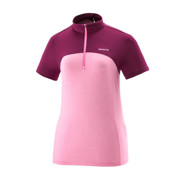 여성 여름 티셔츠 로 신축성 이 우수한 티셔츠 입니다 멜란지 소재와 솔리드 소재를 믹스한 상하 배색형 집업 티셔츠로 트레킹 및 일상 에서 편안하게 착용가능한 티셔츠 입니다