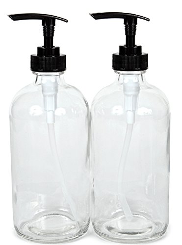 - 2 - 16 oz, Clear glass bottle's, with black Lotion Pumps.