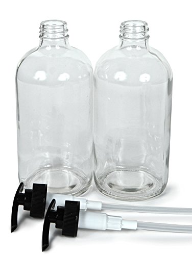 Vivaplex, 2, Large, 16 oz, Empty, Clear Glass Bottles with Black Lotion Pumps