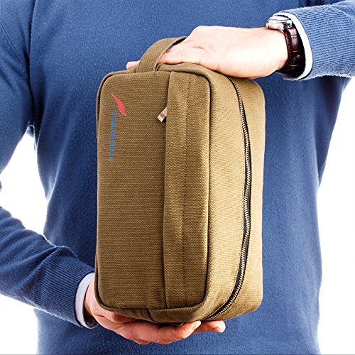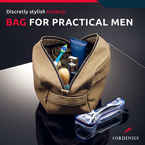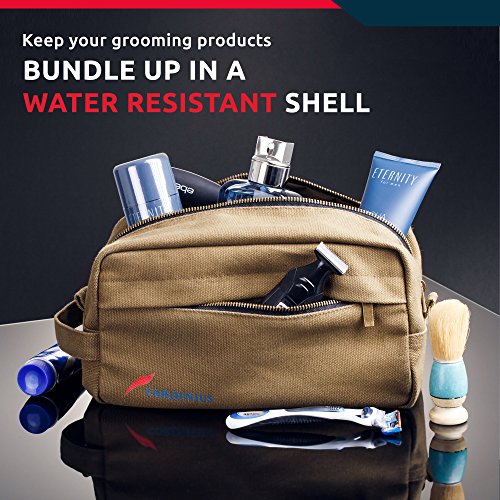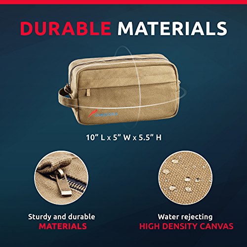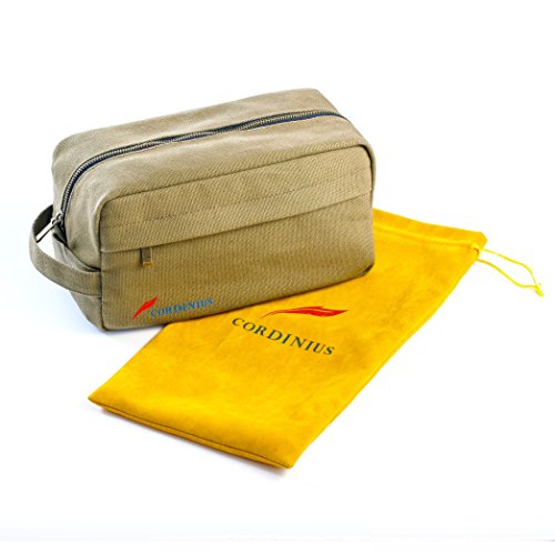 Cordinius Canvas Travel Toiletry Bag for Men - Shaving & Grooming Dopp Kit, 10” x 5” x 5.5”, Army Green - With Velvet Drawstring Bag - Carry everything you...