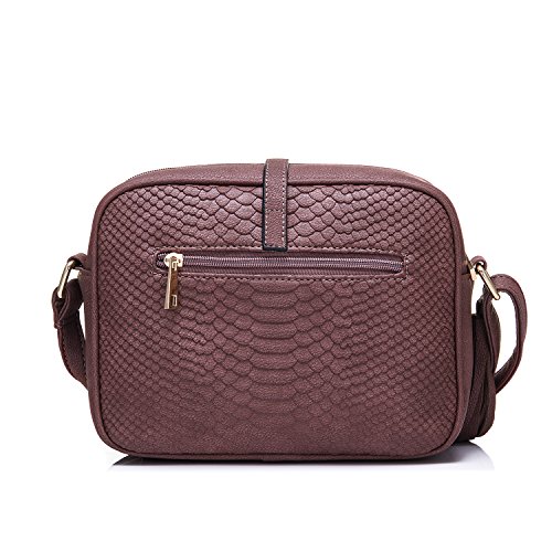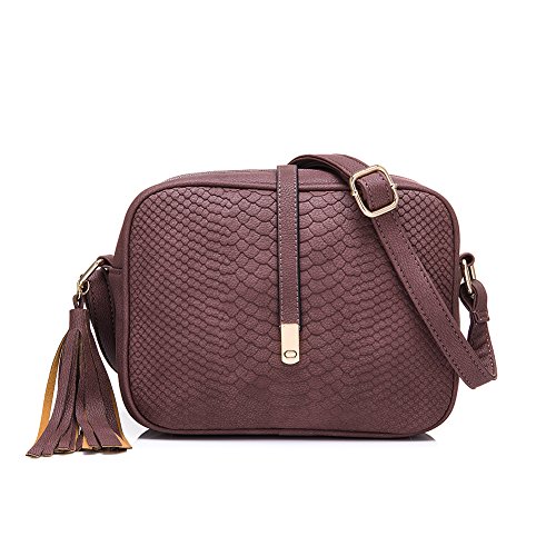 Side with tassels charm. Back with zipper pocket.Shoulder bag size:8.7" x 7.1" x 2.8"(WxHxD) strap height: 8.7"-20.5"