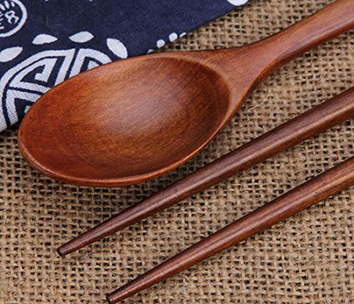 -. Feature : Material: high quality wood / Spoon size: 23.5*4cm/9.3*1.6in; chopsticks length: 23.5cm/9.3in / package includes 3 pcs set(spoon, chopsticks amd tableware bag) / Easy maintenance, simply wash with soapy water and let them dry / Perfect for lunch at school, picnic, or other fun outdoor activities