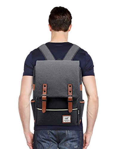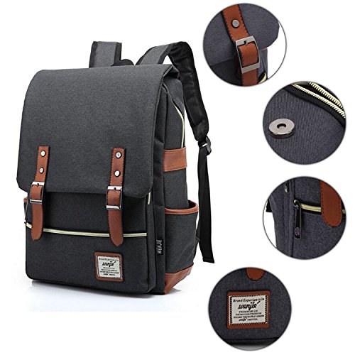 -. Feature : ★ HIGH QUALITY COTTON CANVAS -- This Canvas Laptop Backpack is Made of Skin-Friendly Soft Cotton Canvas and Genuine Leather Trim. Vintage Style and Comfortable For Wearing / ★ LARGE CAPACITY -- This Casual Rucksack Has A Roomy Main Compartment, 1 Internal Security Zippered Pocket For Valuable Items, 2 Zippered Front Pockets Closed by Button and 2 Open Side Pockets, 1 Laptop Compartment Pocket / ★ CANVAS LAPTOP BACKPACK -- This Retro Canvas Backpack Features 1 Laptop Compartment Pocket for Laptop Up to 16 inch. Capacity Meets Cool Vintage Style without Looking Oversized / ★ ADJUSTABLE PADDED SHOULDER STRAPS -- 2 Nicely Padded and Adjustable Straps in the Back with Nice Venting on the Side to Allow a Positive Airflow So that You Do Not Get Too Hot During Carrying Around / ★ SUITABLE FOR ALL OCASSIONS - 17*11.4*5.3 Inches (L*W*H) This Casual Vintage Canvas Daypack is Perfect for school, work, traveling and hiking, Camping or Leisure Time. A Unisex Backpack Intended for Both Men and Women. 18-Month Hassle-Free Warranty