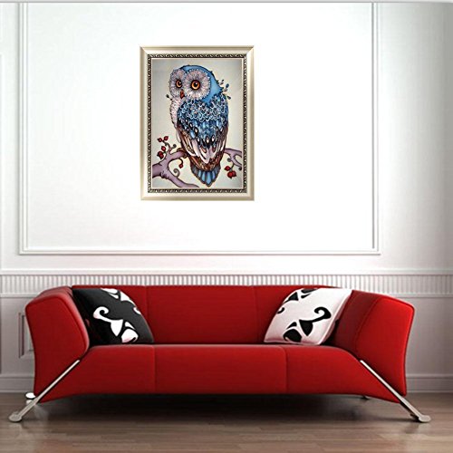 DIY 5D Diamond Painting by Number Kits, Full Drill Crystal Rhinestone Embroidery Pictures Arts Craft for Home Wall Decor Gift (owl, 11.8 x15.7 inch)