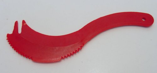 - Tupperware plastic kitchen tool with serrated edge for slicing tomatoes, veggies, soft fruits, even some types of cheese