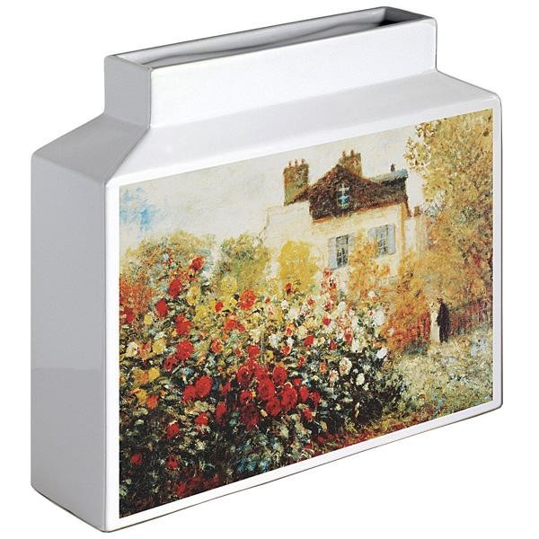 純白の陶器に世界の名画を特殊UV印刷した、高級感溢れるフラワーベースアートです。