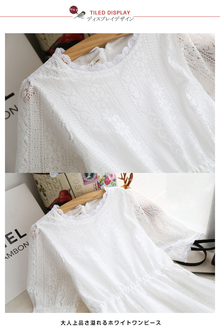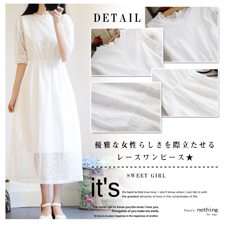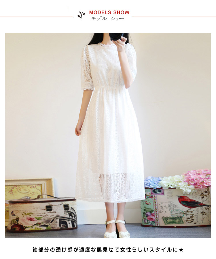 | 優雅な女性らしさを際立たせるレースワンピース★ 袖部分の透け感が適度な肌見せで女性らしいスタイルに★結婚式やお呼ばれ、演奏会、2次会、成人式、ブライダルなどにもピッタリ★ | |