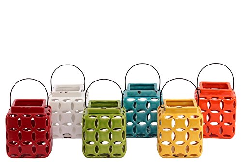 -. Title : Urban Trends Ceramic Lantern Assortment, Red/White/Yellow/Orange/Turquoise/Yellow Green