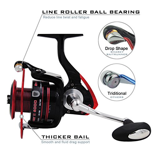 Sharky 6000 Weight 14.5oz/405g / Max Drag 30.85LB/14KG / Gear Ratio 5.2:1/ Line Capacity 0.20mm/150m, 0.235/100, 0.26/70 /Monofilament Capacity 6Lb/165 Yds, 8/110, 10/75