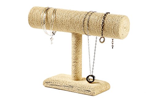 Jewelry Display Stand Organizer Necklaces Bracelet T-Bar Burlap - 9.75 x 3 x 7.5 Inches