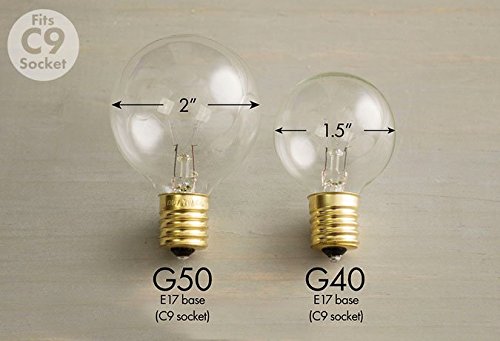 • Included - (50) G40 (1.5" diameter), 7W/130V, E17 base, clear, glass globe light bulbs