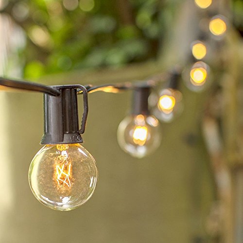 GLOBE STRING LIGHTS, 50 FEET BLACK WIRE, CLEAR 1.5 INCH BULBS, INTERMEDIATE BASE