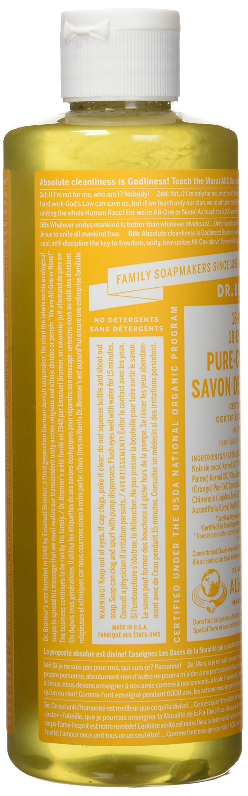 "Magic soap citrus orange 472 ml (regular imported item)" is a liquid facial cleanser manufactured by Dr. Bronner Inc., USA.
