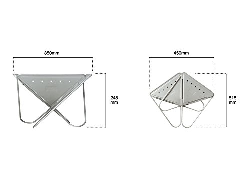 L크기보다 한층 컴팩트한타입.옵션도 충실히 해 있고, 여러가지 분화요리가 가능합니다.아이에게 불을 가르치는 계기로서도,분화받침대는 최적입니다.분화받침대의 구조는 참으로 심플합니다.삼각 플레이트에는,두께1.5mm의 스테인레스재를 채용 하고 있습니다. 이 두께는 몇 번이나 필드 테스트를 거쳐 정해진 수치입니다.분불이나 숯불의 고온으로 견디는 완강한 스펙입니다.삼각 플레이트를 둘러싸는 바와 같이(하도록) 용접 된4책의 프레임은,스테인레스 파이프입니다.다리부도 겸하는 모아 둬 하중을 받아내고, 접지부도 안정감을 얻기 위한 형상으로디자인하고 있습니다. 분불이나 숯불이 강대한 열을 조리에 살리기 때문에,각크기에 장착 할 수 있는 그릴 bridge를 준비 하고 있습니다. 플레이트나 넷류를세트해 호쾌한 요리도 즐길 수 있습니다.발매부터 14년 경과하도에 오 늘어지지 않는 터프한 기어입니다.