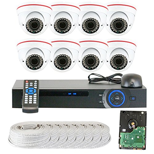 GW 8 CH 1080P Preview 720P Realtime (8) Varifocal Zoom IR Night Vision Dome Security Camera DVR System with Pre-Installed 2TB Hard Drive