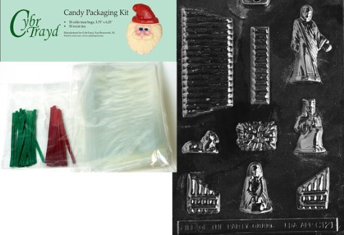 Cybrtrayd MdK50C-C121 Nativity Scene Christmas Chocolate Mold with Chocolate Packaging Kit and Molding Instructions, Includes 50 Cello Bags, 25 Red and 25 Green Twist Ties