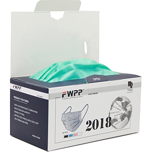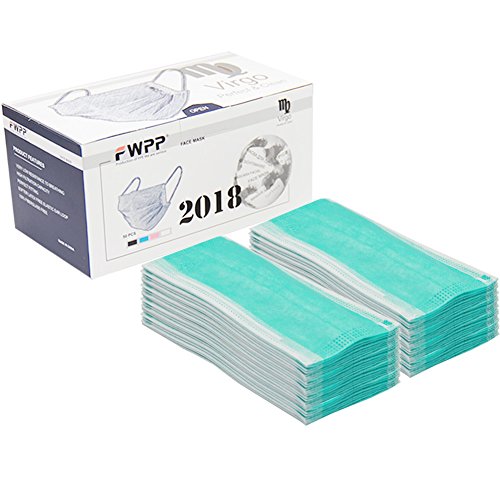 FWPP Earloop Disposable Surgical Face Mask, 3 Ply Thicker Super Filter Pollen Dust and Bacteria, Anti allergy Dental Medical Procedure Mask, Pack of 50 Pcs (Emerald Green)