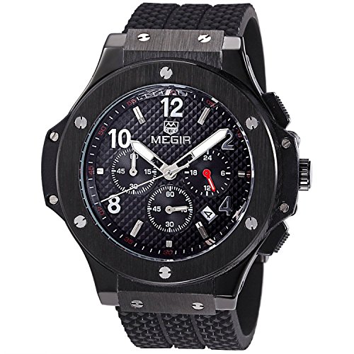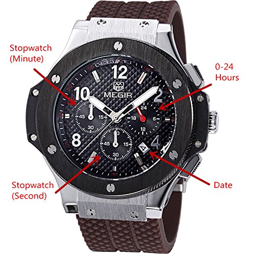 -. Title : Megir Men's Sport Silicon Band Chronograph and Calendar Function Luminous Quartz Wrist Watch