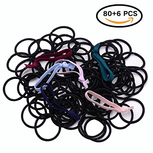 -. Feature : 80 pcs basic black Hair Ties + 6 PCS Beauty Large Hair Ties No Crease, no damage hair elastics / Soft elastic for no-damage hold without damage / Easy to take with you for instant style change, perfect for all hair types / Hold ponytails tight while working or playing / You can got: Fashionable hair accessories for your active life