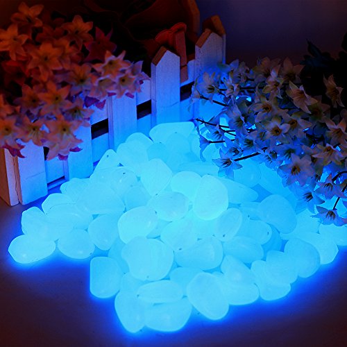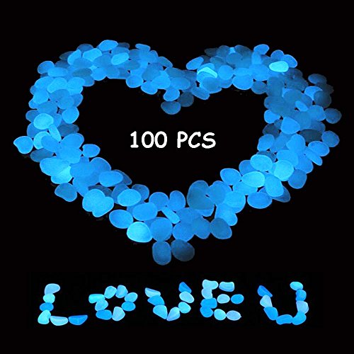 H2MTOOL 100pcs Glow in the Dark Garden Pebbles, DIY Luminous Decorative Gravel Stones for Walkway Aquariums (100, blue light)