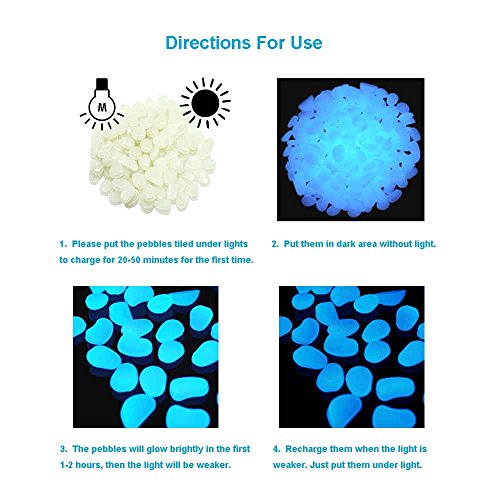 GLOW IN THE DARK: The Luminous pebbles glow in dark place after absorbing light. The display is radiant and attractive.